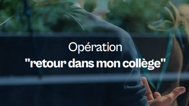 Vous permettre de retourner dans votre ancien collège pour témoigner de votre parcours, échanger avec les élèves, leurs enseignants et ainsi devenir des modèles de proximité inspirants.