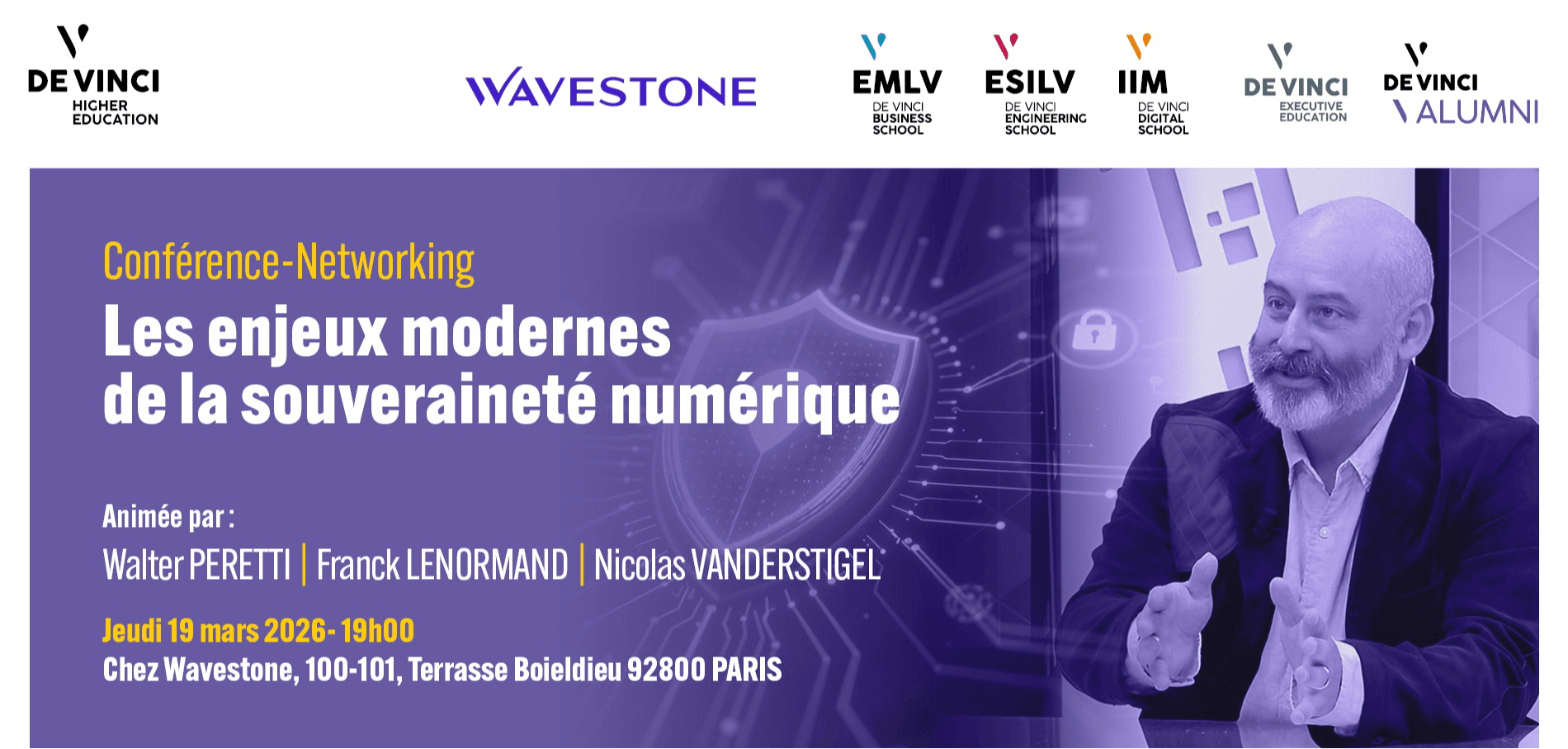 Pour comprendre les enjeux très concrets derrière ce débat stratégique, nous vous proposons une soirée entre diplômés et étudiants chez Wavestone, entreprise partenaire du Pôle Léonard de Vinci.